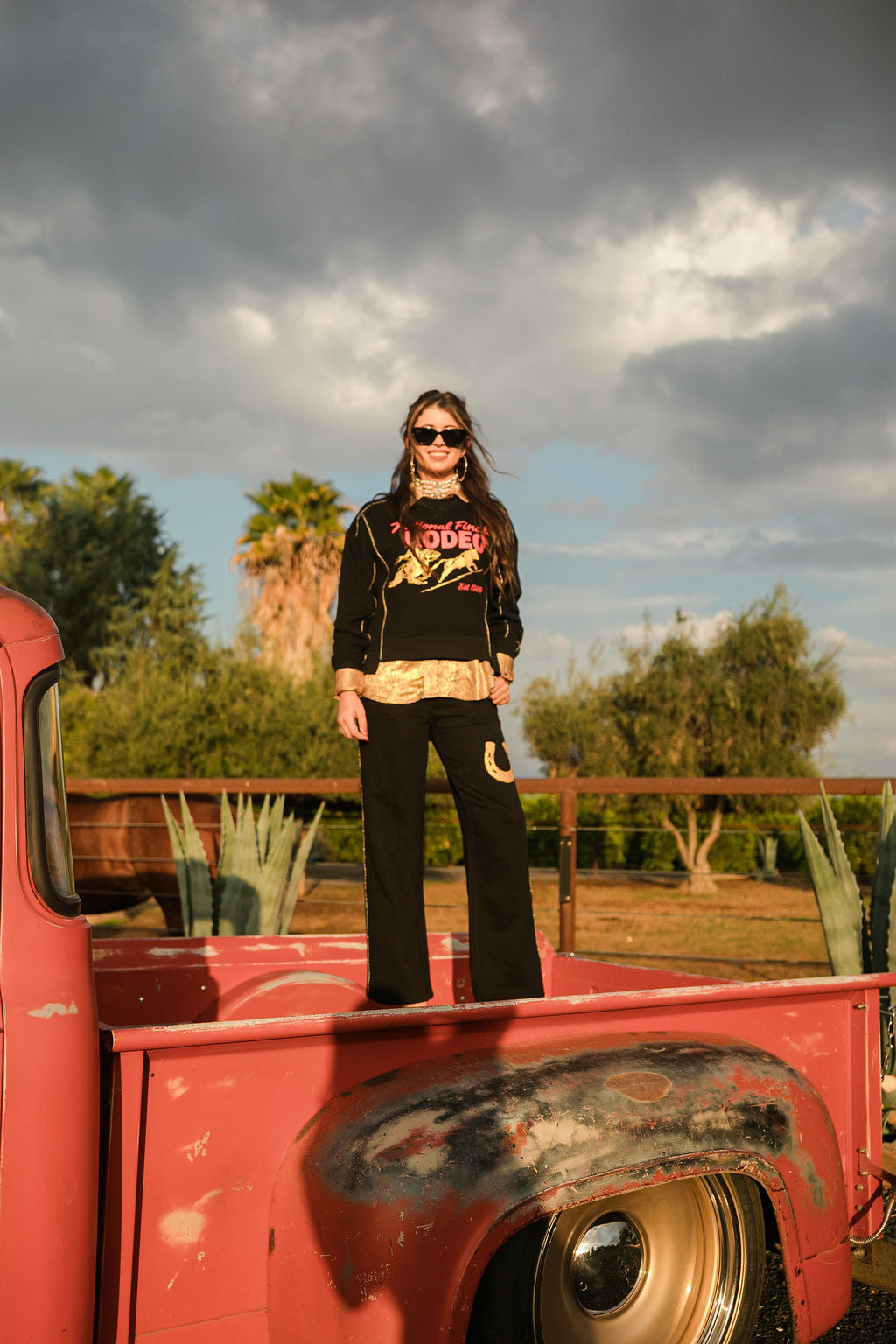 The EST 1959 Pant brings vintage rodeo vibes to modern loungewear with effortless style. Designed for comfort with a flattering fit, these pants feature bold Rodeo Quincy graphics that celebrate Western heritage. Pair them with the matching pullover for a laid-back look that still turns heads.