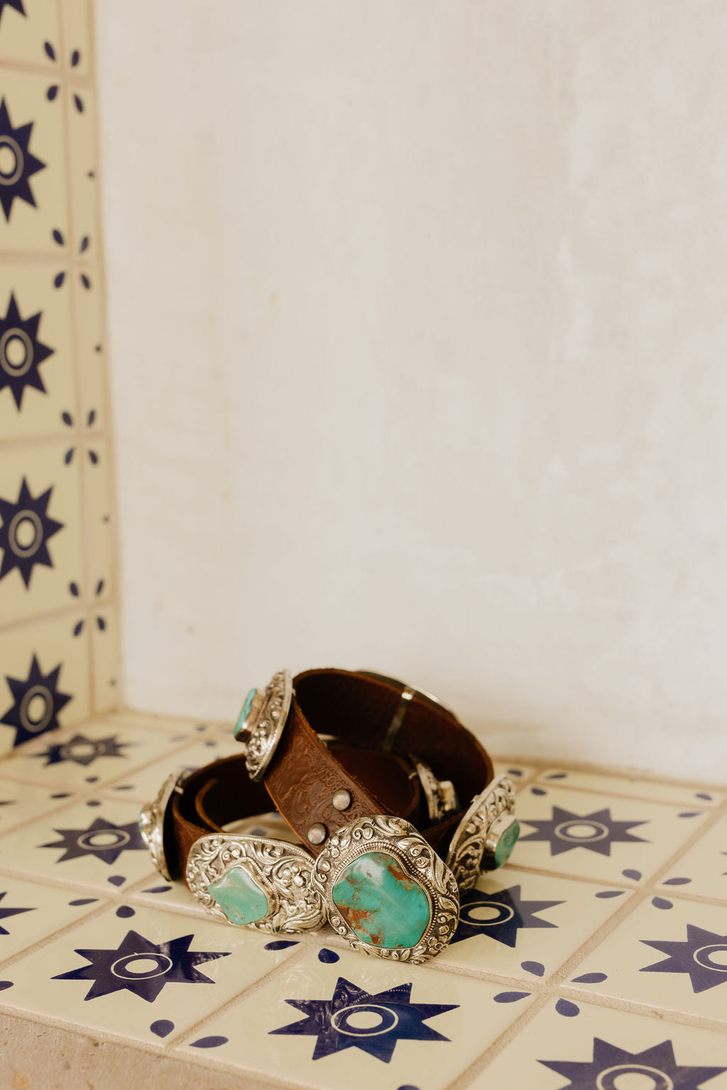 The Hot Shot Concho Belt features charming German silver conchos adorned on genuine leather, adding a sprinkle of rustic flair to any outfit. Perfect for cowgirl chic or casual days, it’s a delightful accessory that blends style with versatility!