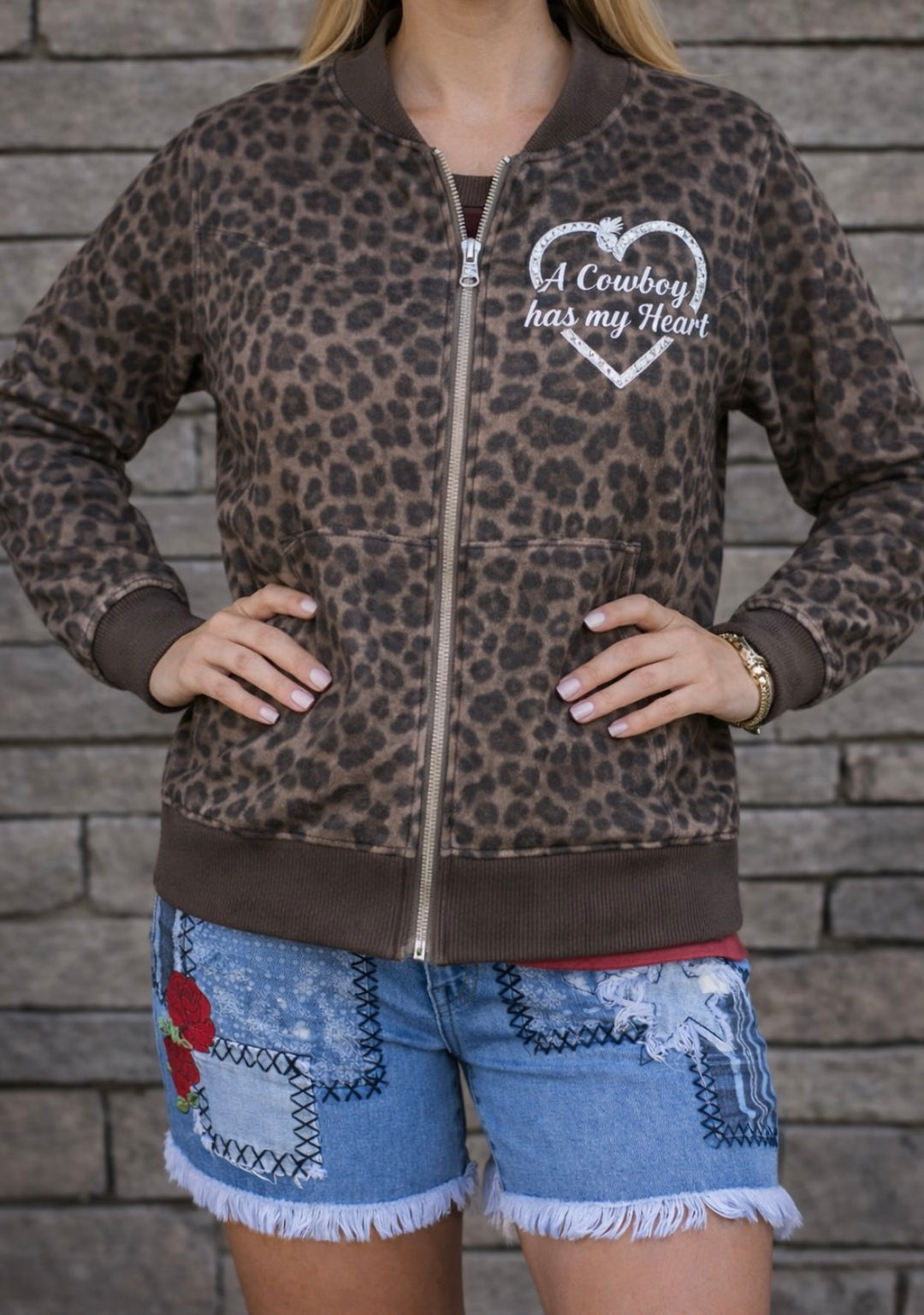 A Cowboy Has My Heart Black Leopard Jacket