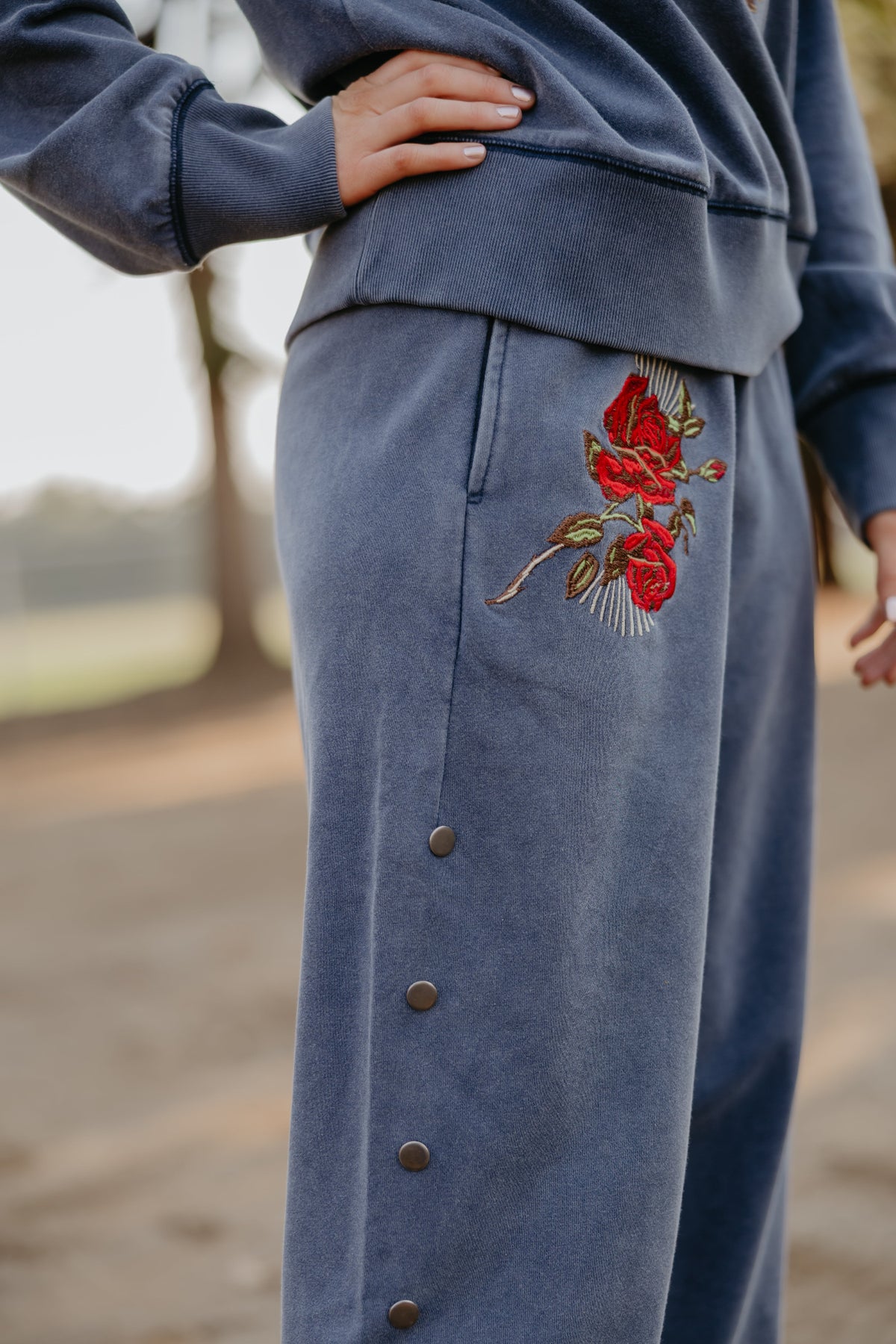 The Horses in Heaven Sweatpant is the perfect pair to your favorite pullover—soft, soulful, and made to move with you. In matching gray with a delicate rose detail, these sweats blend comfort with quiet tribute. Whether you're on the road or resting up, they keep the spirit of your favorite horses close.