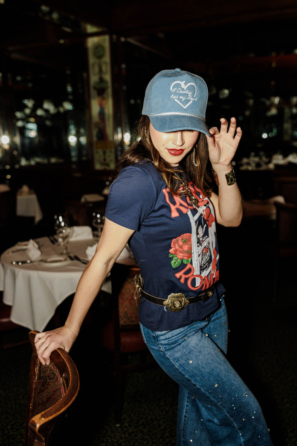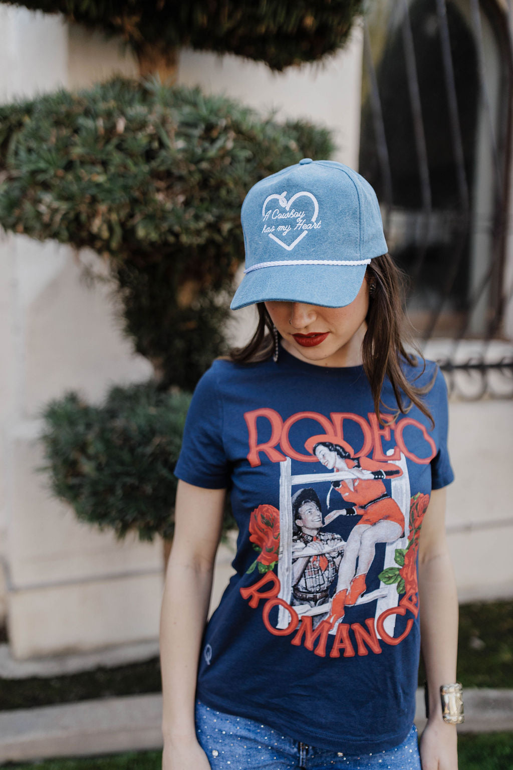 Be bold and show your love with the Cowboy Has My Heart Hat! The perfect accessory for any cowgirl, this hat is adorned with the heartfelt message "A Cowboy Has My Heart". With its classic western style and denim fabrication, this hat will be a go-to all year long.