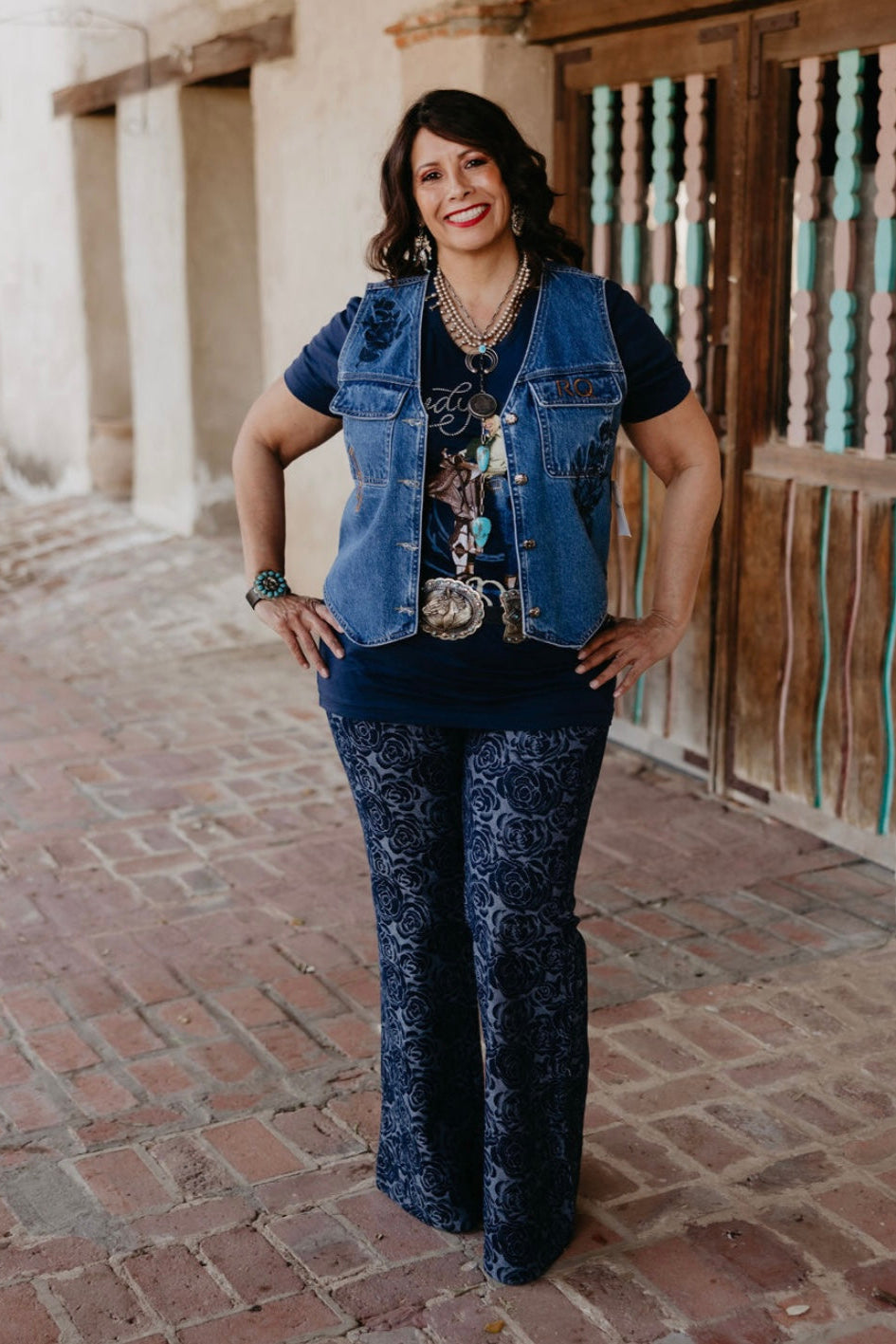 Take charge in these iconic pants, designed to pair perfectly with the Iconic Q Blazer, or stand alone as a wardrobe powerhouse. Featuring a tailored fit through the hips with a flare through the calf and ankle, these pants are as sharp as they are comfortable. The striking rose print, a Rodeo Quincy signature, makes these pants an instant standout in any crowd.